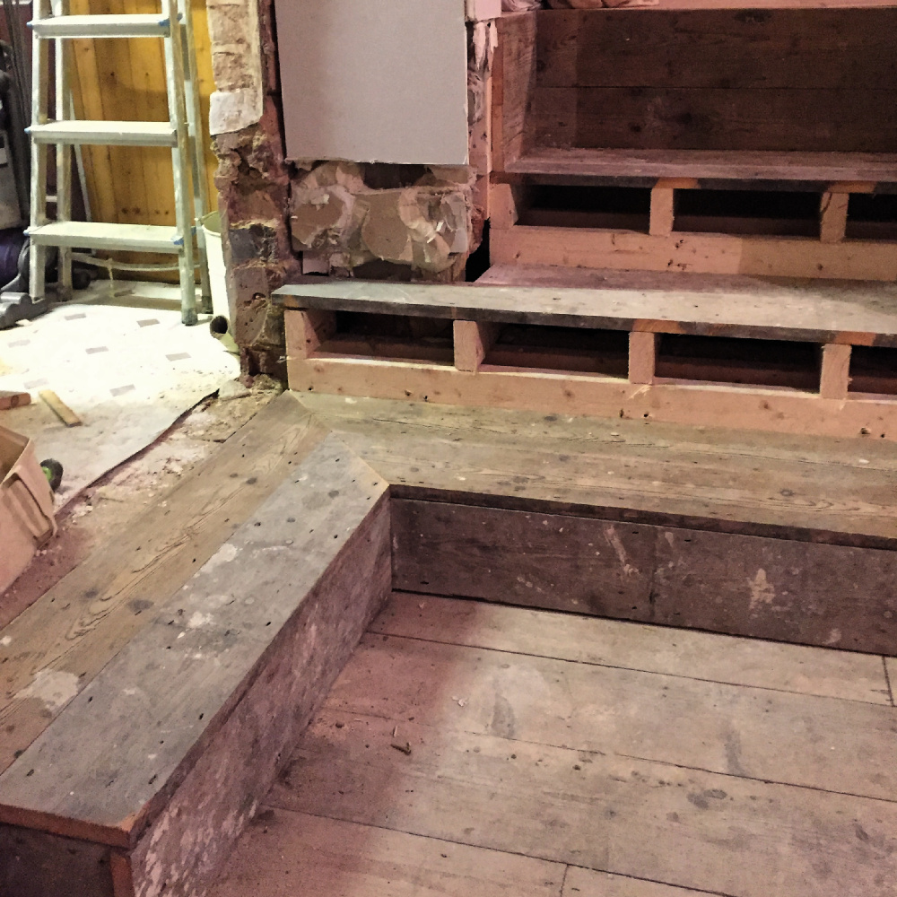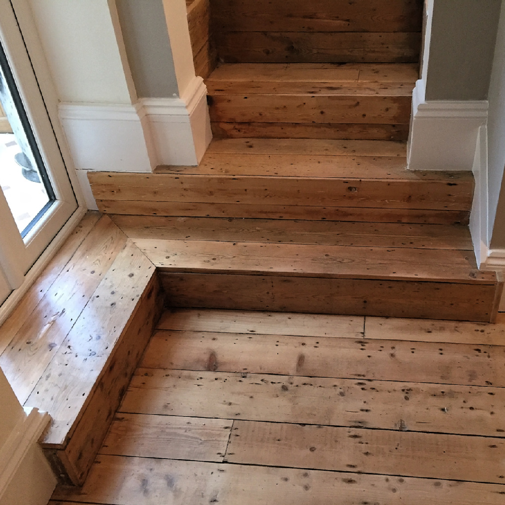 Stairs made from reclaimed timber. Skirting boards made and fitted to spec.